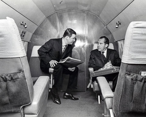 The protocol was for someone on staff to call network executives and ask for better treatment. Nixon’s chief of staff, H. R. Haldeman, instructed Buchanan to do it. But he had another idea. The administration should go public, meet the enemy—”the collective power of the national press,” as he now puts it—head-on. “What we had to do was say: They are as political and ideological as we are. They’ve got all this power, and there’s a tiny handful of them, and they didn’t get it democratically the way we did. And we have a right to fight against that power using our First Amendment rights, just as they do.”